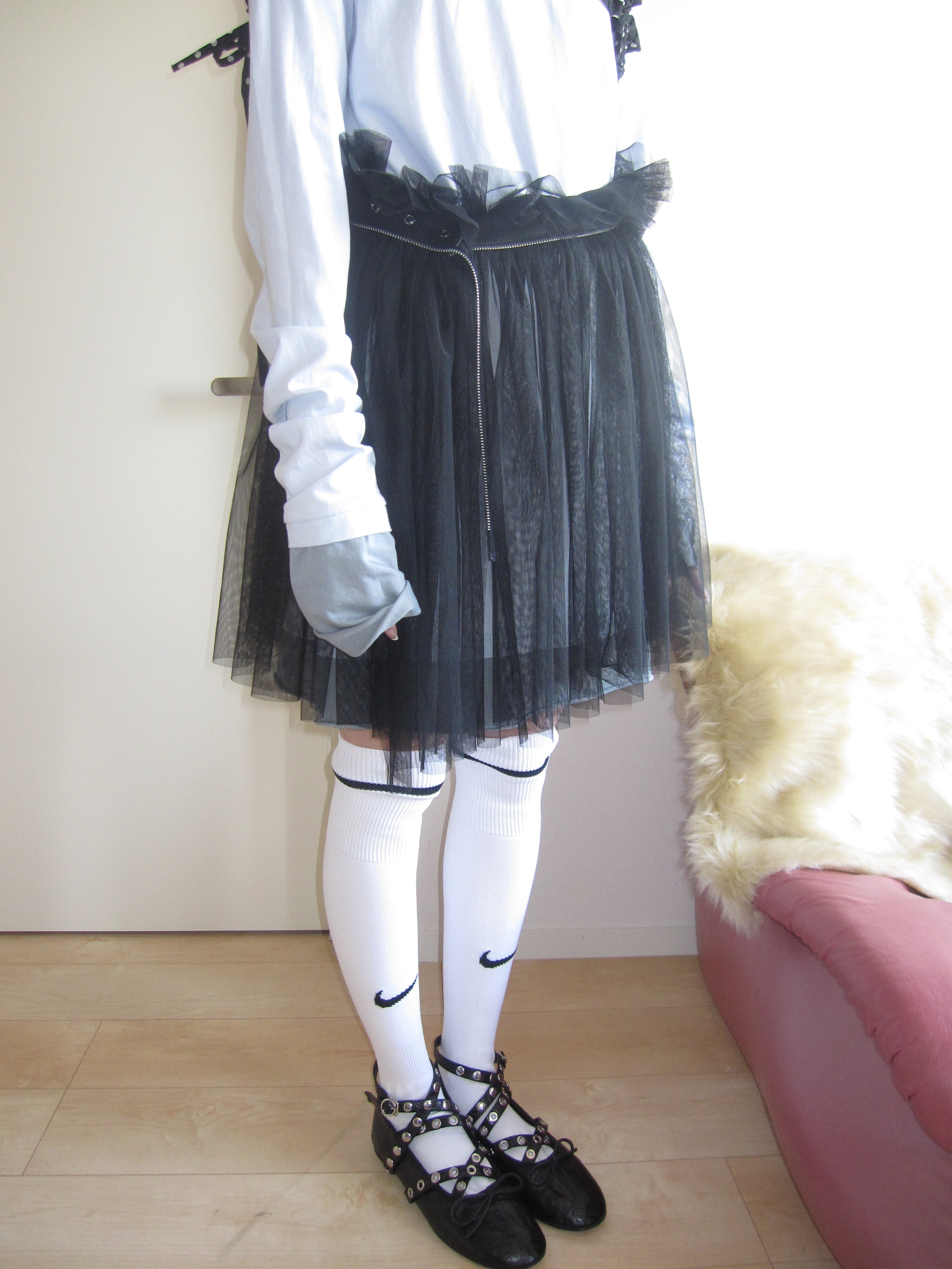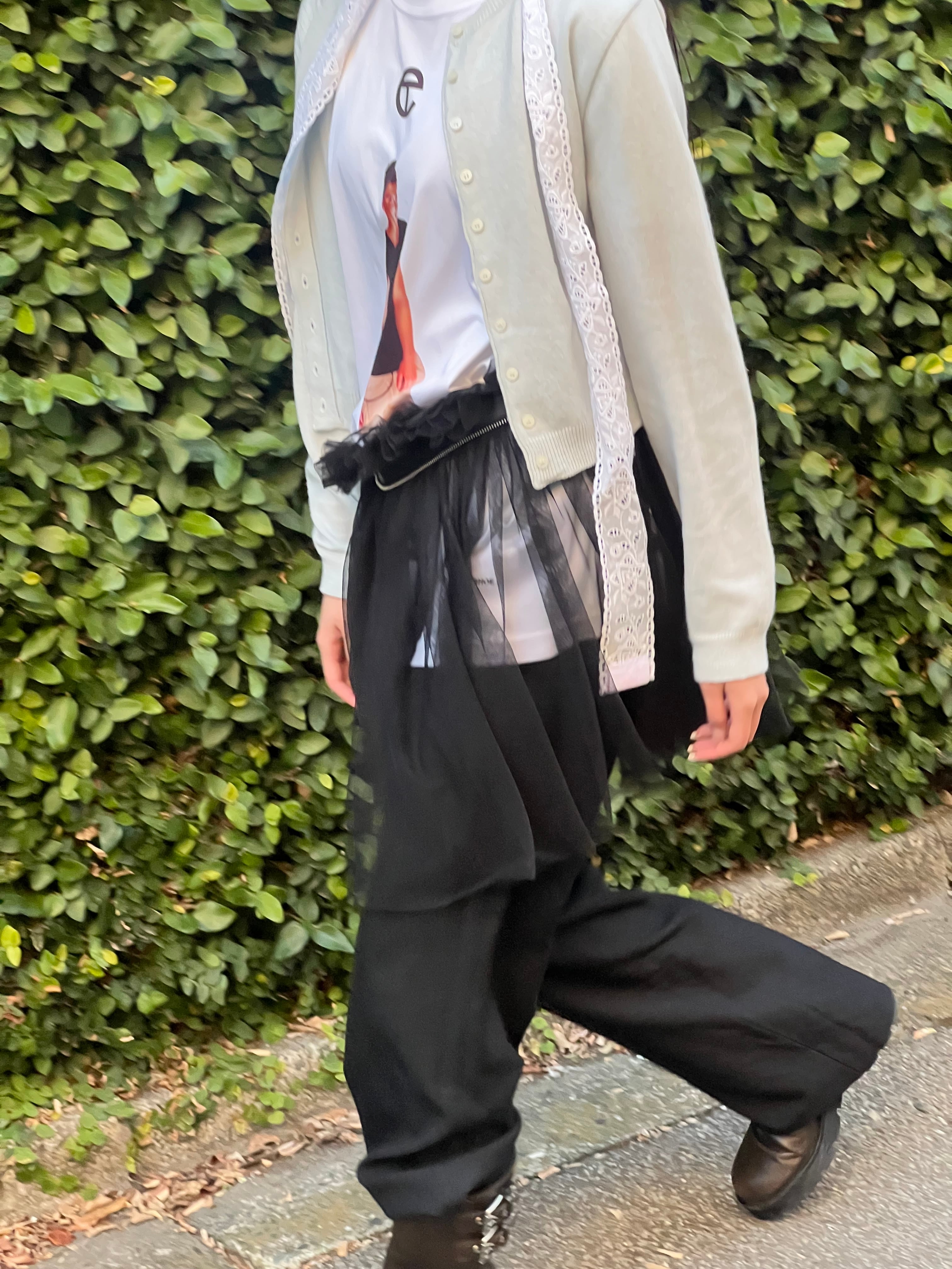 ⭐︎wrap tulle skirtは、柔らかなチュール素材を使用した巻きスカートです。シンプルに合わせるだけで、フワッと女性らしさを引き立てるデザインが魅力。甘すぎず、クールなスタイルにもマッチするので、デイリースタイルから特別な日まで幅広く活躍します。風に揺れるチュールの繊細さが、動きのある印象を与えます。
