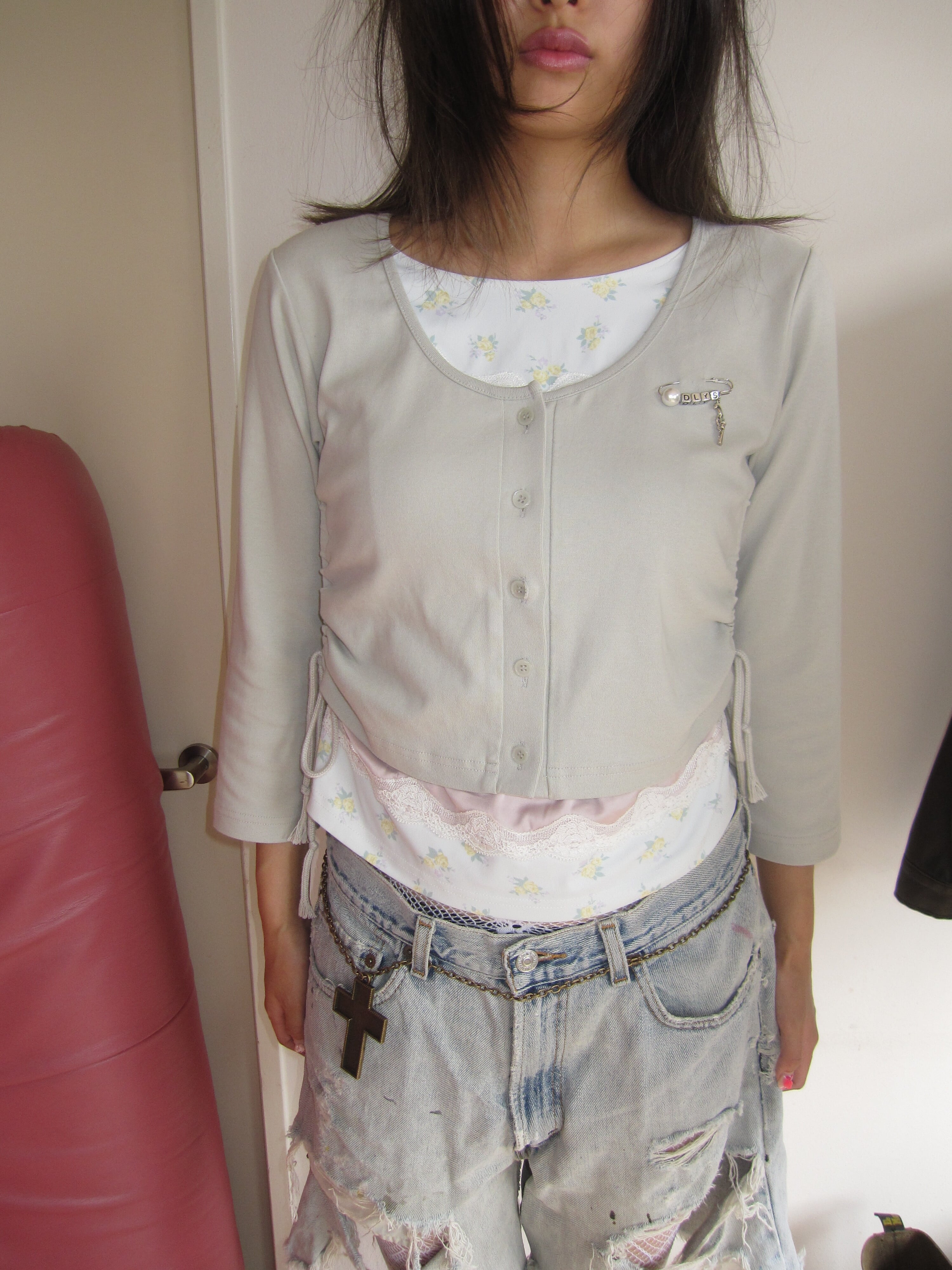 レイヤードしているのかと見せかけて、実は全て繋がっているトップス⭐︎色の組み合わせも、華奢に見えるシルエットもとてもロマンチック♡映画の主人公が着てそうなイメージ。