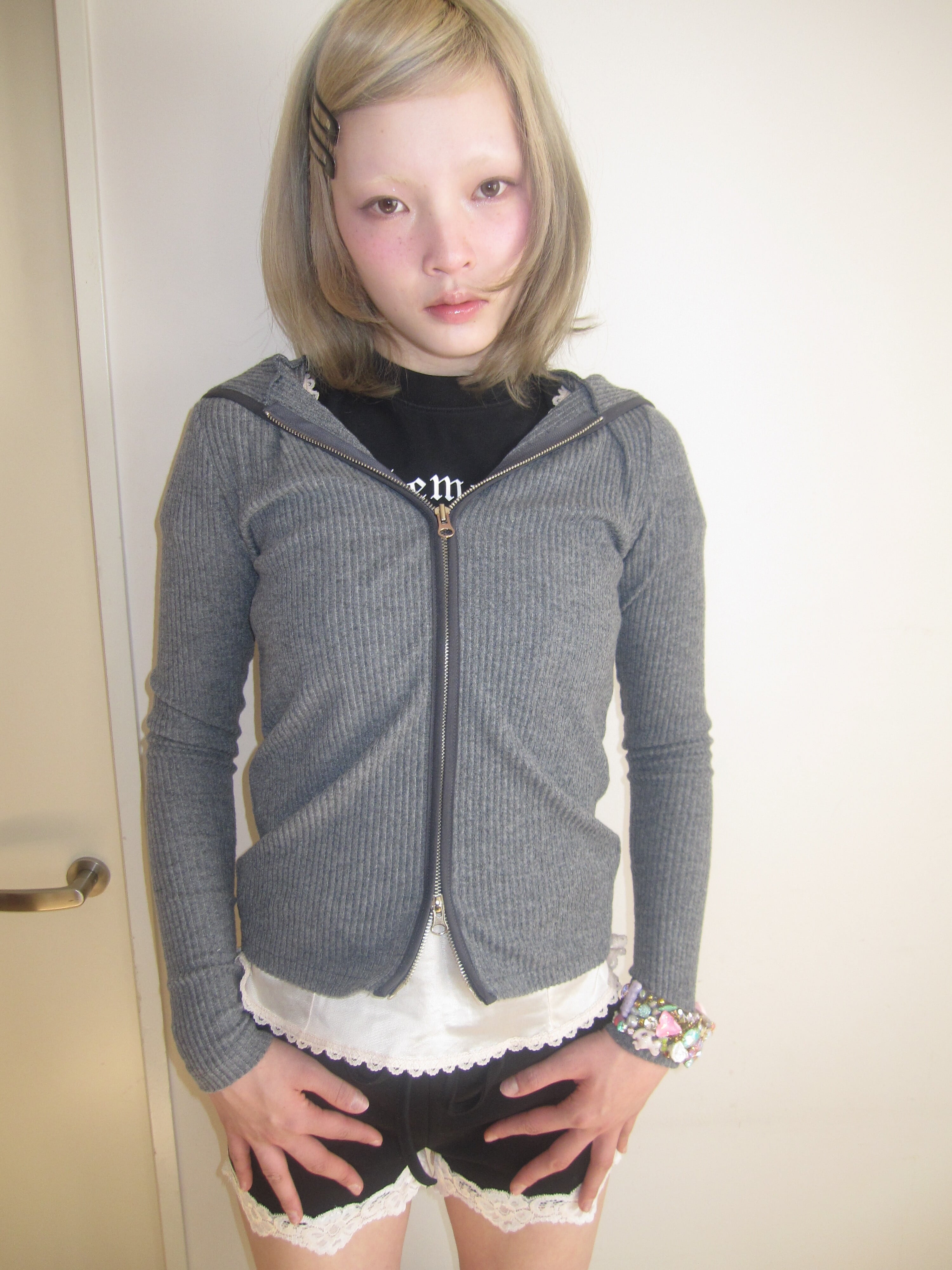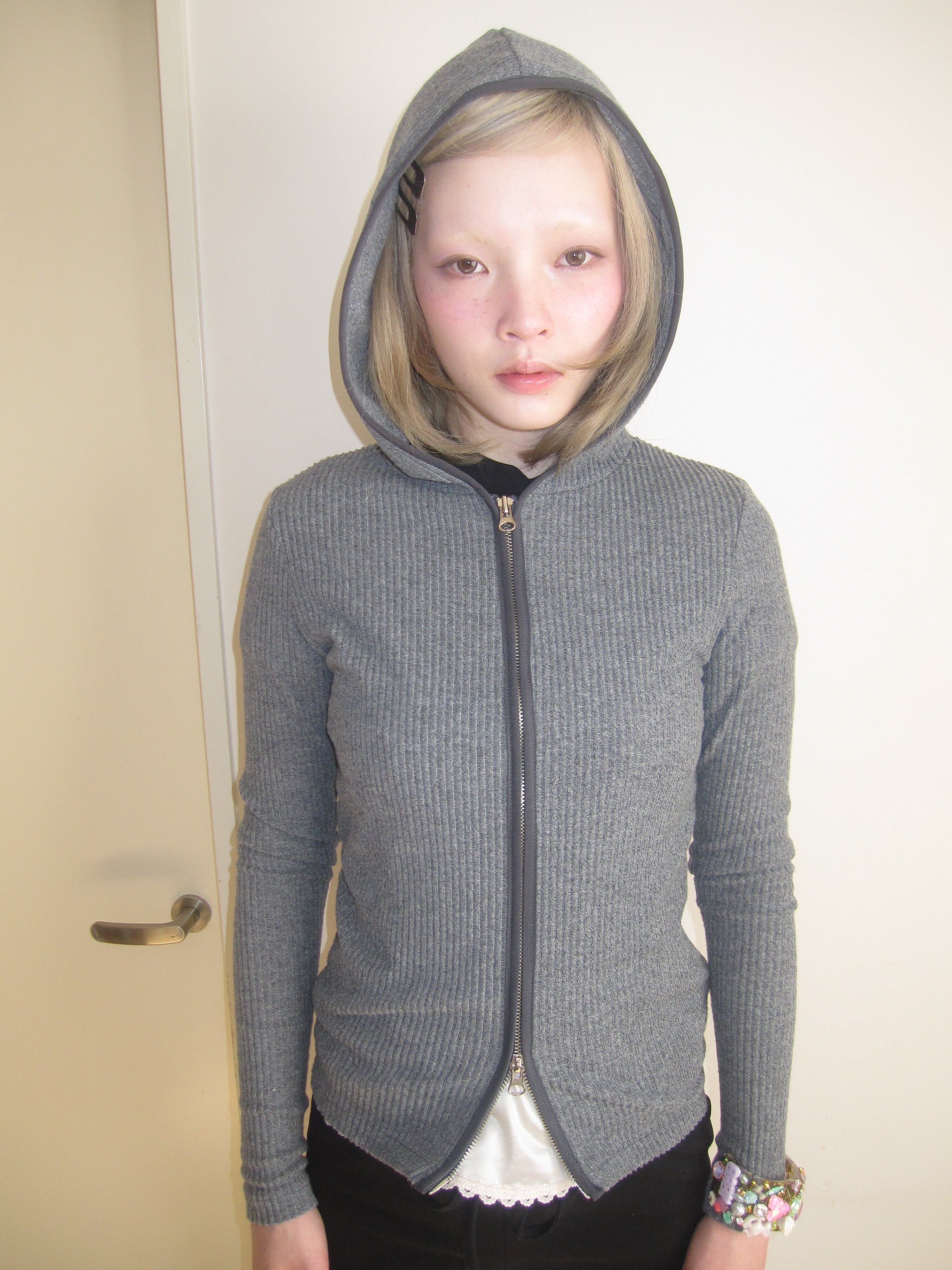 スリムフィットシルエットのジップフーディー。