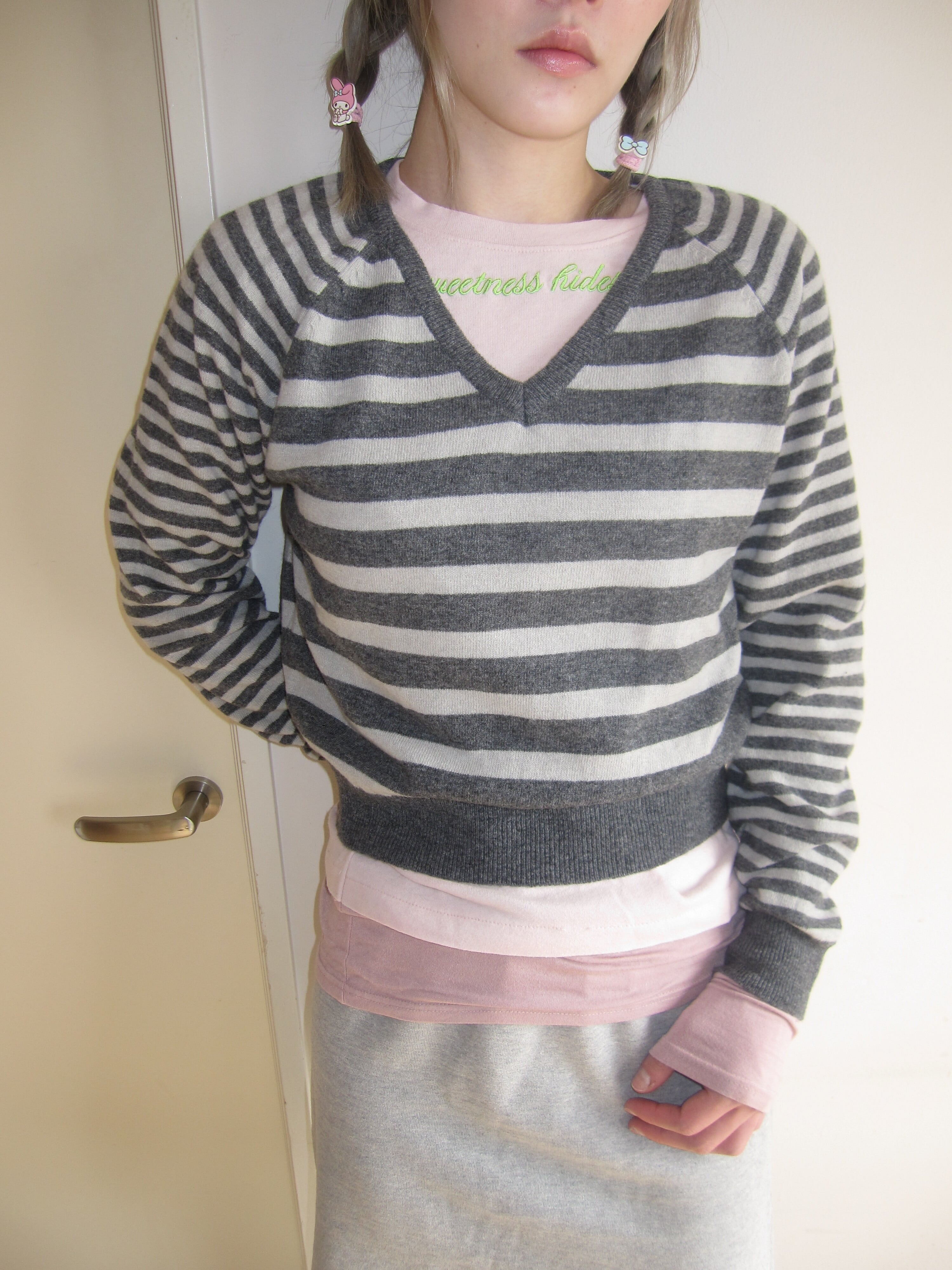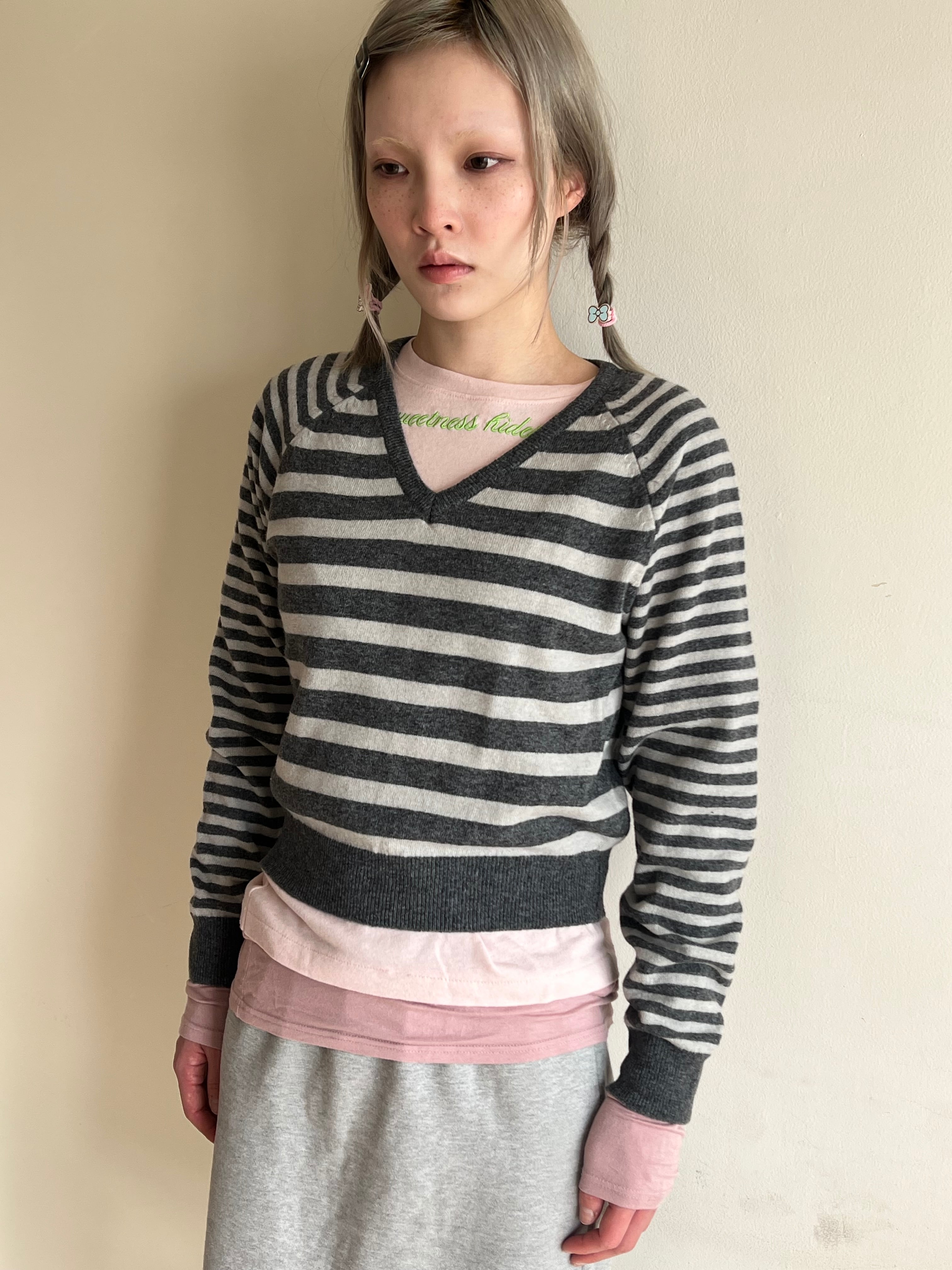 Striped V-neck Knit Sweater